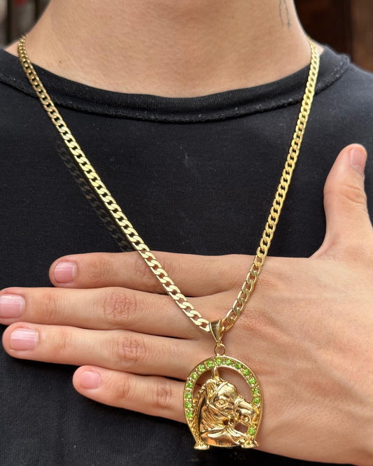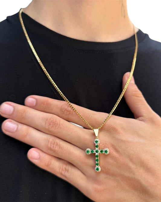 Cadena Cubana 60 Cm / 4 MM + DIJE CRISTO VERDE..