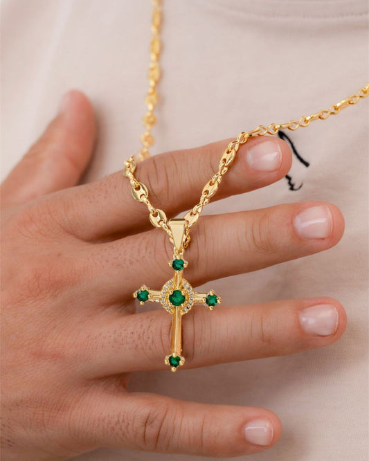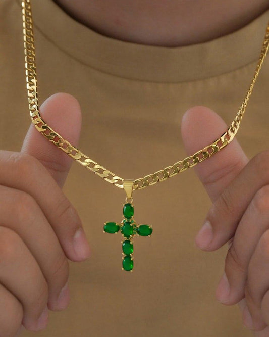 AHORRA 53%Cadena Cubana 60 Cm / 4 MM + DIJE CRUZ VERDE