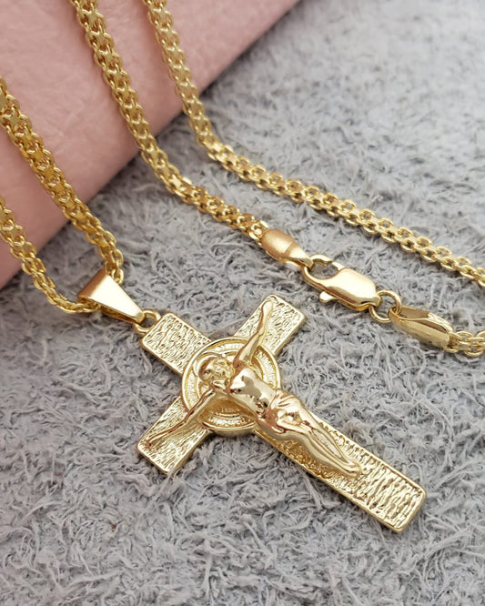 Cadena Tejido Chino ( 3 mm - 65 cm ) + Dije Cruz San Benito