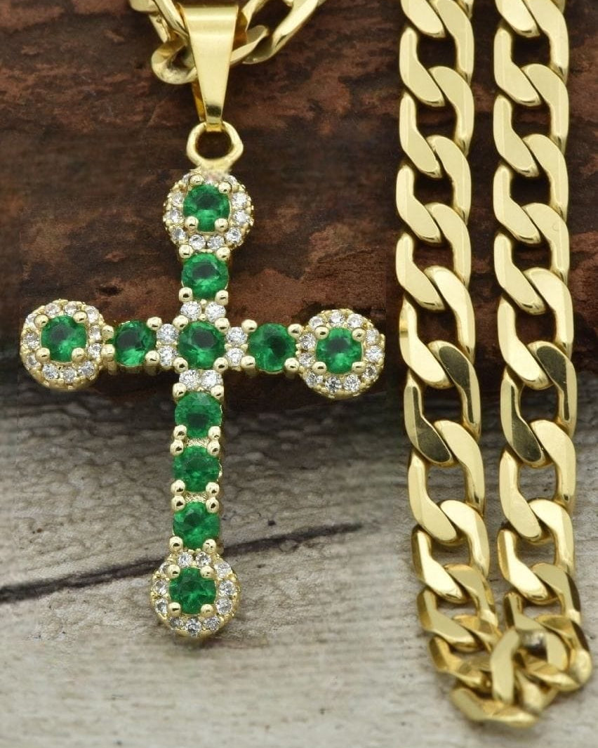 Cadena Cubana 60 Cm / 4 MM + DIJE CRISTALES VERDE
